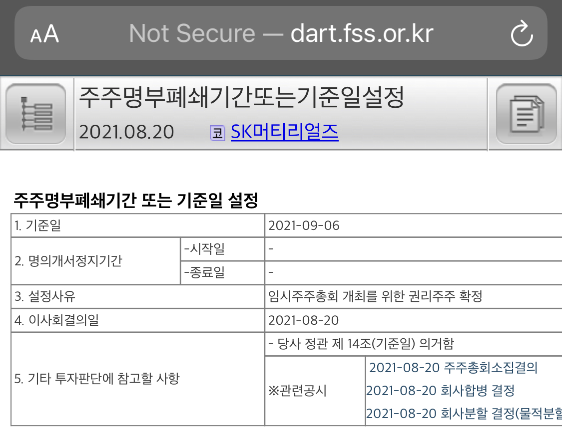 SK머티리얼즈가 8월 20일 공시를 통해,